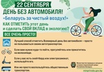 22 сентября Республика Беларусь присоединится к Международной акции «День без автомобиля», чтобы привлечь внимание общественности страны к экологическим проблемам, напомнить о негативном влиянии автотранспорта на окружающую среду.