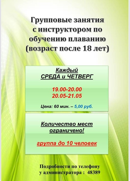 Групповые занятия с инструктором по обучению плаванию взрослых